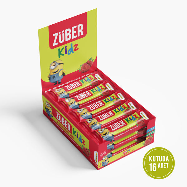 Lezzet için besleyicilikten, besleyicilik için lezzetten ödün vermenize gerek yok! Züber Kidz meyve barları hem lezzetli hem de besleyici. Lif içeren Kidz meyve barları, günlük beslenme ihtiyaçlarına katkı sağlarken çocuklara yepyeni bir atıştırmalık deneyimi de sunuyor. Despicable Me partnerliğinde ünlü Minions karakterleriyle süslü paketleri ise çocukların tüm ilgisini çekiyor.