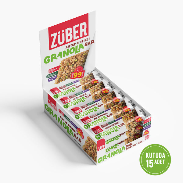 Siz de beslenmenize lezzet katmak istiyorsanız yer fıstıklı yulaflı barları mutlaka deneyin. Daha geleneksel tatlar arıyorsanız Züber’in Antep fıstıklı yulaflı barları sizin için biçilmiş kaftan! Bahar ve yaz tadında bir yulaflı bar için kırmızı meyveli barları, çay yanı kurabiye deneyimi özleminiz için elmalı tarçınlı granola bar sizi bekliyor! Bal ve meyve suyu konsantreleriyle lezzetlendirilen bu bar, damağınızı şenlendiriyor.